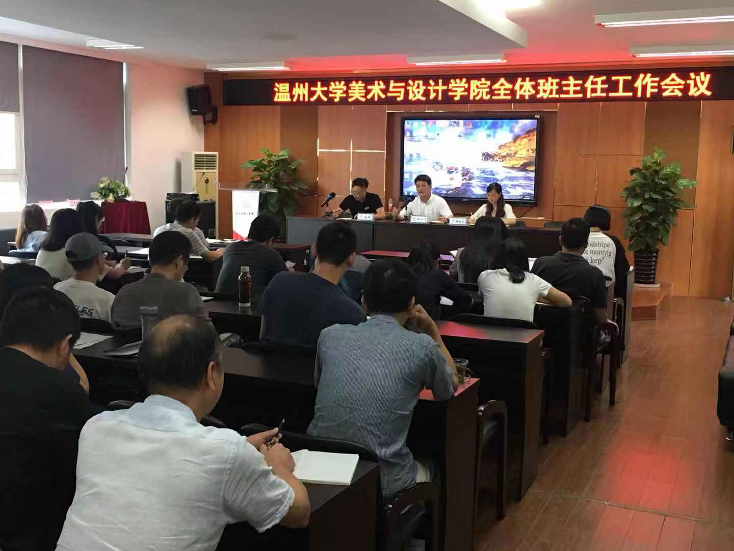 2019年9月10日下午,美院2019/2020学年第一学期班主任工作会议在2B4001会议室召开。学院党委书记叶正飞、副书记杨丽君、全体辅导员以及16、17、18级班主任共50余人参加了会议。