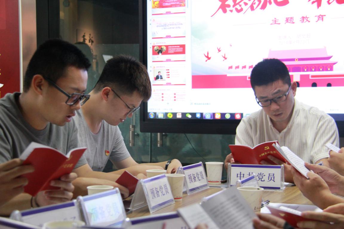 在大家朗读完党章后,由胡文超同志进行关于“不忘初心、牢记使命”主题教育宣讲。宣讲围绕着“主题教育的根本任务”和“做新时代合格共产党员”两个话题。胡文超同志强调,要做到增强“四个意识”,坚定“四个自信”,做到“两个维护”。在开展主题教育中要注意抓“四个到位”:一是抓思想认识到位,二是抓检视问题到位,三是抓整改落实到位,四是抓组织领导到位。这为开展主题教育提出了新要求、明确了新方向,是进一步做好主题教育的重要遵循,有助于推动主题教育往深里走、往心里走、往实里走。接着,胡文超同志就“争做新时代合格共产党员”这一话题展开了宣讲。胡文超同志敦促新时代党员应当“加强思想引领切实以学促建”、“坚持领导带头 注重以上率下 ”、“学习党史党规真诚知党爱党”、“改进工作作风做到亲民为民”、“突出问题导向力求教育实效”。