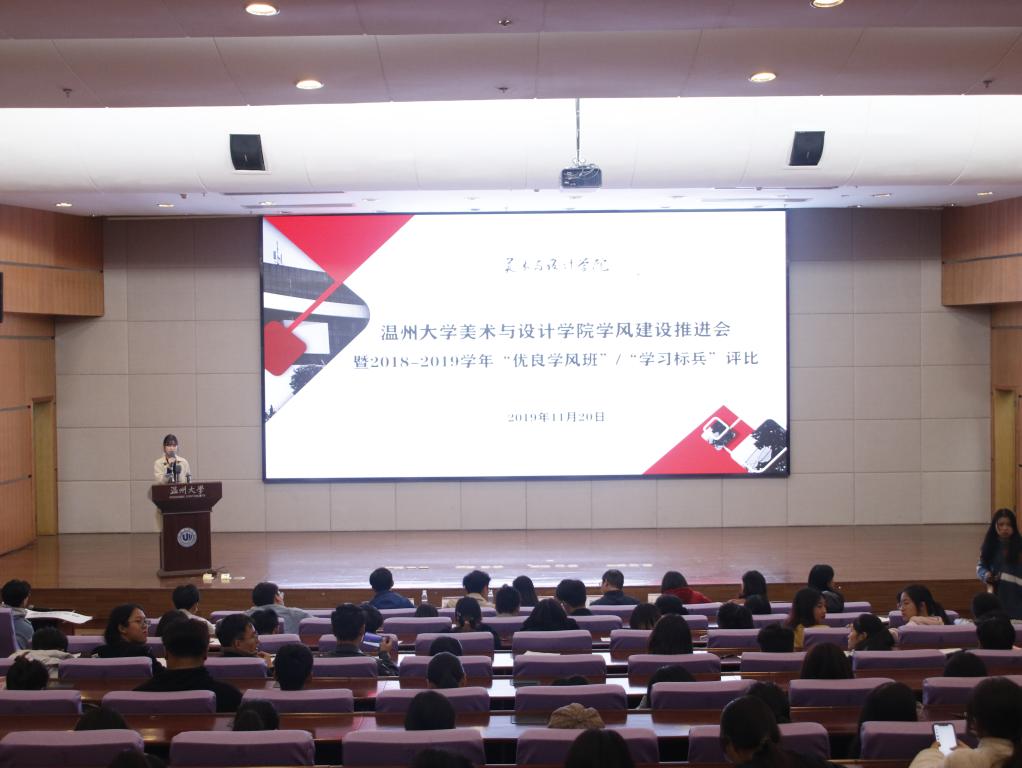 为加强美院学风建设,2019年11月20日晚,kaiyun·开云(中国)官方网站 - kaiyun.com学风建设推进会暨2018-2019学年“优良学风班”和“学习标兵”评比活动于育英图书馆报告厅顺利举行。出席本次评比活动的评委有kaiyun开云官方网站党委副书记杨丽君老师,学工办主任杨鹏老师,教学科阳自杰老师,辅导员杨永利老师,学生会主席祝晴同学以及各班学生评委。 本次共有7个班级和10位选手参加“优良学风班”及“学习标兵”评比。首先进行的是“优良学风班”评比,各参赛班级从学习风气纪律、班级特色、班级荣誉和团日活动等多个方面,向我们展示了一个个团结友爱、积极向上、学习氛围浓厚的大家庭。紧接着是学习标兵评比,有了前面优良学风班的激烈竞争,各位学习标兵参赛选手也毫不示弱。每位参赛同学都纷纷展示了个人所长、科研成果、社会活动和各项荣誉,并表达了自己对未来的期望。各位学霸们的精彩展示,让现场发出一阵阵热烈的掌声,他们让我们感受到了美院优秀学子们锲而不舍,一丝不苟的学习态度,勇往直前的拼搏精神和一颗温暖善良的内心。 最后,学院党委副书记杨丽君老师对所有参赛班级和个人给予了积极的肯定。同时,杨丽君老师对美院学子提出了三点期许:第一,遵规守纪,做优秀温大人;第二,扎实学习,做优秀美院人;第三,积极进取,做最优秀的自己。相信各位同学将以此次参赛选手为榜样,严于律己,积极向上,相信我们美院也会如杨书记所言,莘莘学子成栋梁,芬芳园丁名四方,共创美院新辉煌。