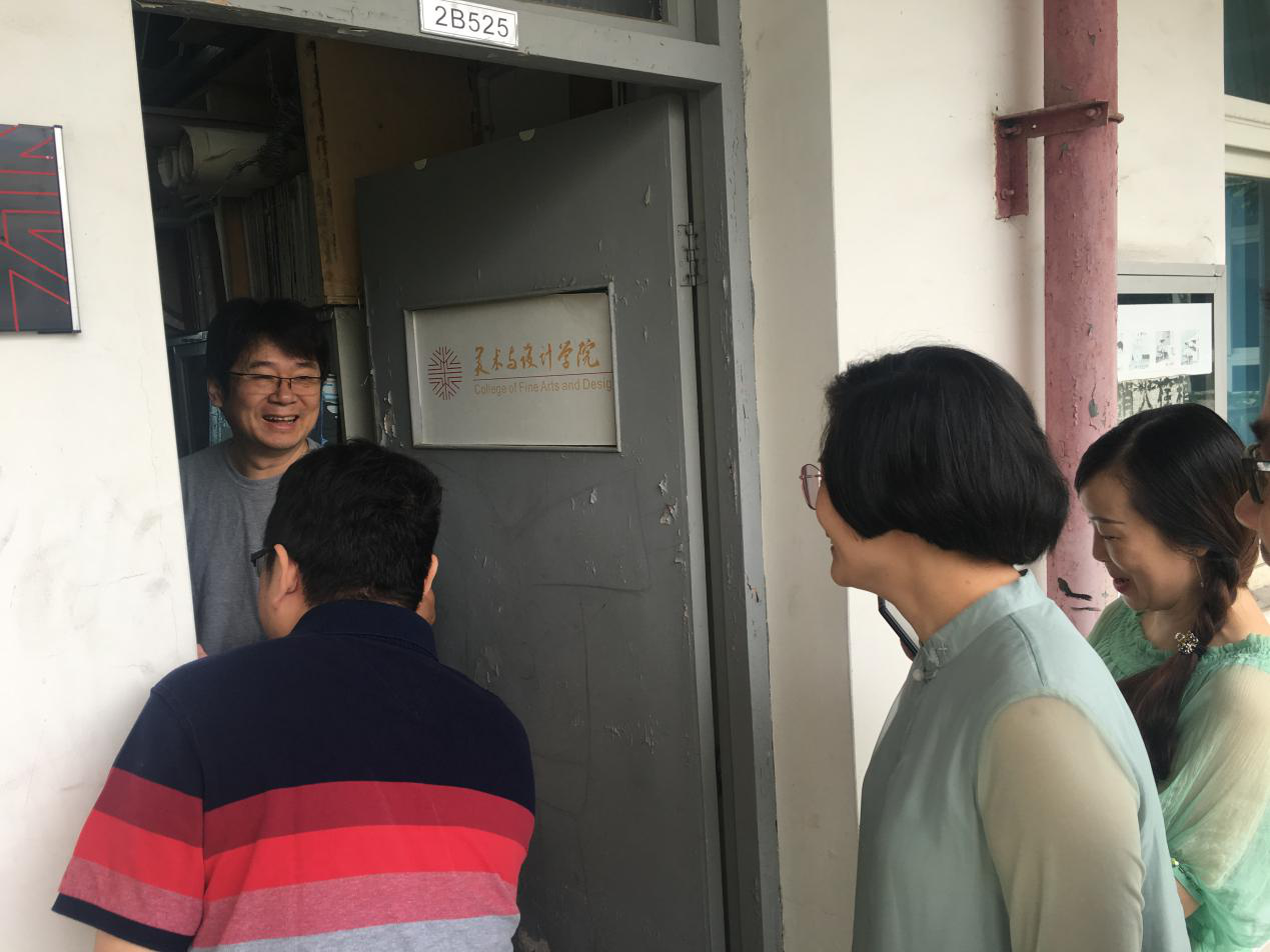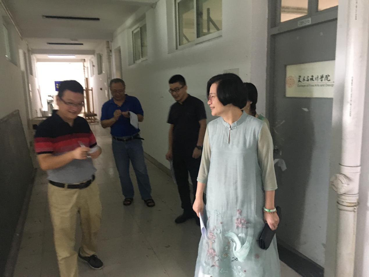 周四上午校领导潘玉驹、部门领导李密、校督导袁建国、美院领导谢子静、胡文超、美院教务科黄呼尔励,听了18美师3班《美术概论》张晓剑老师的课,张老师的课程幽默风趣有内涵。授课导入以3个为什么引导学生参与探讨,引入案例与实际例子引起学生深入思考,通过知识过渡与展开引导学生深化对问题的认识。张老师教态自然,语言表达逻辑强,在讲台、屏幕、学生之间游走保持与学生交流,达到了很好的积极互动与沟通效果,受到了听课领导的一致好评。 为了规范教学程序、提高教学质量、促进教风、学风建设。开云官网积极推行领导听课制度。领导干部提出宝贵意见,有助于教师发现问题,解决问题。 图:课堂生动打动听课人员 图:授课导入、知识过渡与展开 图:课后研讨 周二开课第一天,院领导谢子静、胡文超、顾任飞、杨丽君、教务科黄呼尔励巡查了开云官网各教室与课程,对师生们的上课状态及学院开学前教室设备等教学准备予以了肯定。 图:院领导、校督导讨论师生教学状态 图:院领导课间与教师交流 图:院领导探访教师工作室 图:部分课堂场景