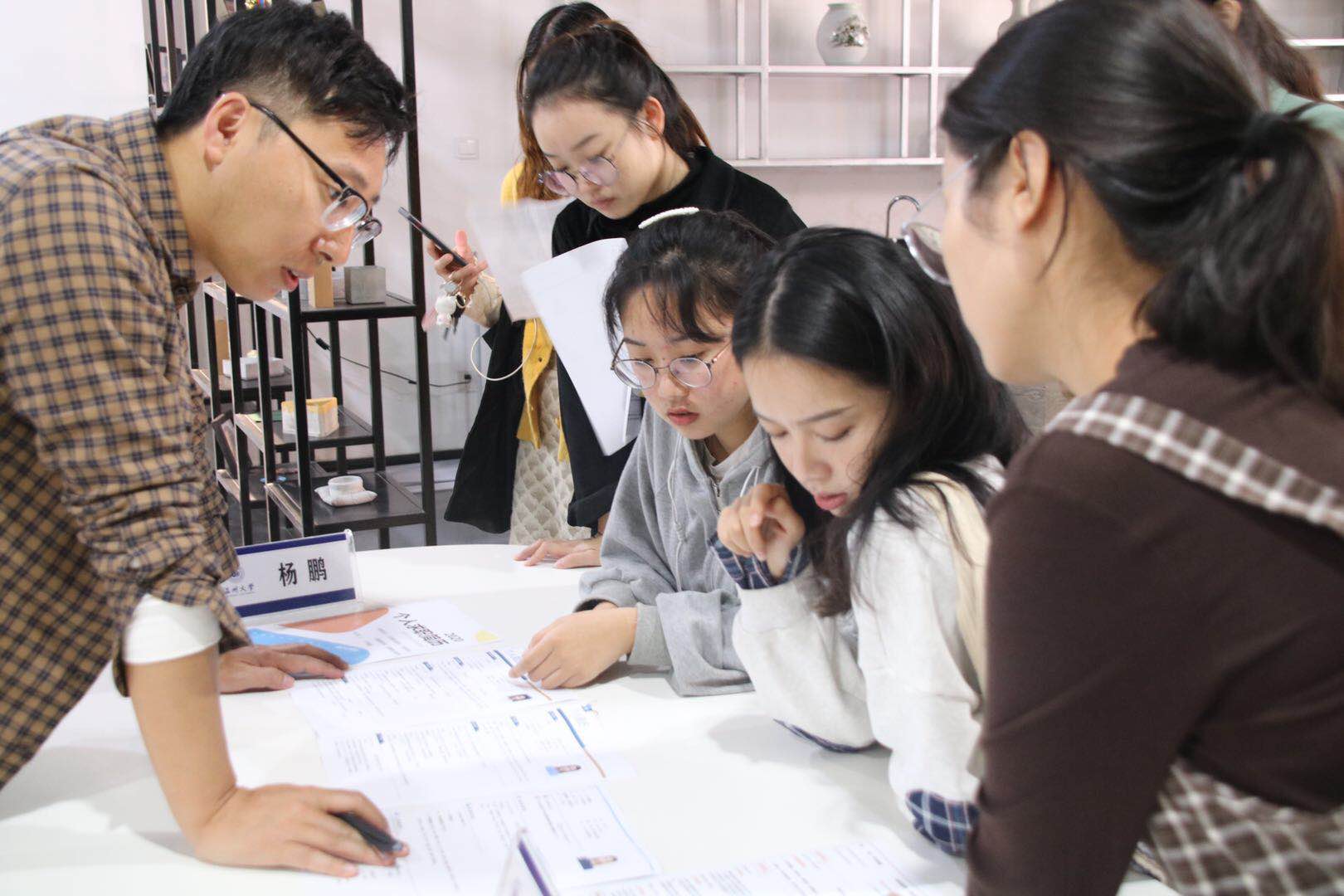 活动刚开始,大家准时到达活动场地进行准备工作,杨鹏老师热情地与同学们分享经验,大家积极有序地进行提问,相互讨论,会场气氛非常活跃。两位XG服饰的HR朱到场后,同学们纷纷拿出自己准备好的简历向她们请教,两位HR针对同学们不同的专业分别进行简历指导。大多数同学的疑问是:简历中需不需要有自己实习期间的照片之类的资料。面对即将步入职场并为此感到迷茫的同学,老师们认为大学期间的实习及从业经历可以加入简历,并建议在简历中强调与面试职位相关的实习经历。
