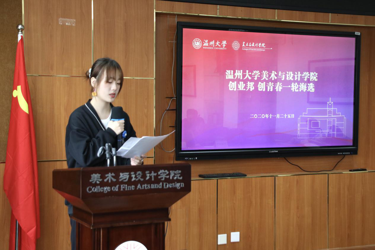 2020年11月25日下午一点半,kaiyun开云官方网站于美院2b4001举行了2020创业邦·创青春主题活动的一轮海选。此次活动由美院团委学生会主席、三届创业邦举办者邱懋澄学长、温大创盟创业创新宣传部部长彭左炎学长、温大创业协会会长、美院KAKAYOUGA手工艺工作室蒋丽华学姐、美院团委学生会创业就业部部长、温大创业协会副会长连庆秋、美院团委学生会创业就业部部长、2020kaiyun开云官方网站互联网+创业创新大赛金奖王臻滢学姐担任评委。此次活动有助于加强温大学生创业技能的学习并且注重大学生创业意志的培养,引导温大人有创新有大胆的同时,深究项目的可行性。