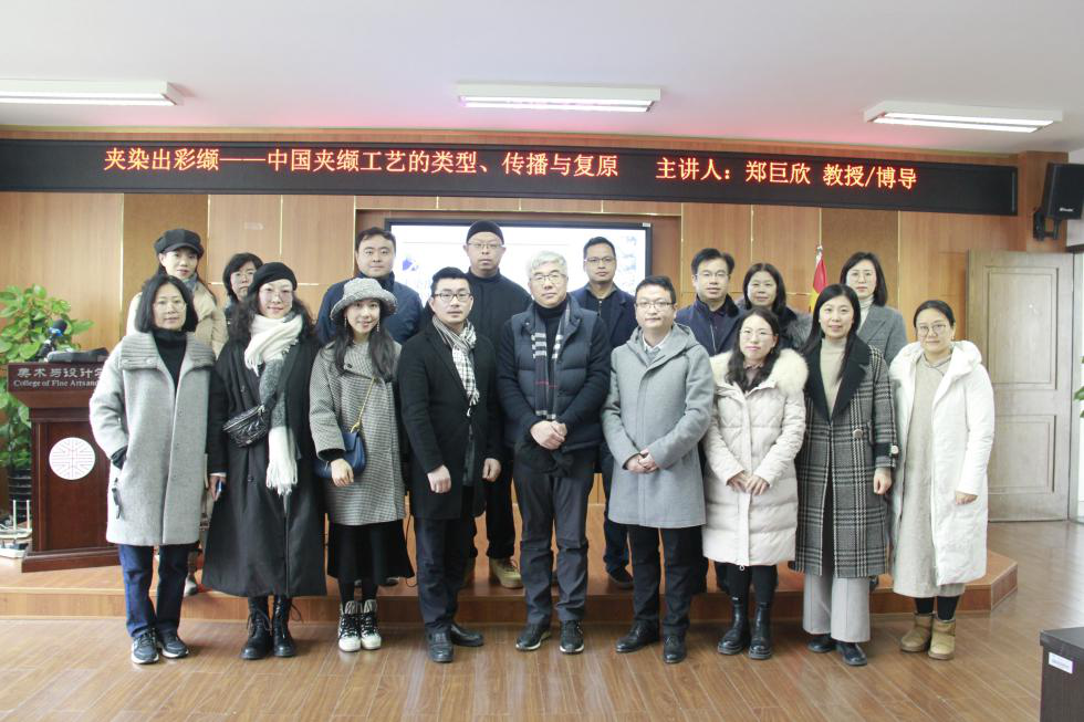 2020年12月17日,为深入贯彻落实kaiyun开云官方网站文科大会精神,探索新文科背景下艺术学科发展新路径,kaiyun开云官方网站2020年学术月系列活动第三场学术讲座,中国美术学院郑巨欣教授的《夹染出彩缬——中国夹缬工艺的类型、传播与复原》在2B4001开讲。学院副院长胡文超、顾任飞以及学院师生参加讲座,本次讲座由顾任飞副院长主持。