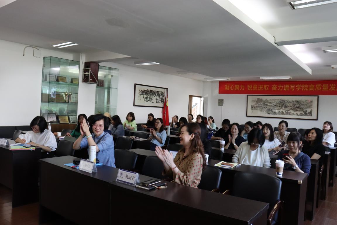 叶正飞书记主持学院妇联执委会委员选举大会,通过差额选举,选举马俊淑、孙莉、杨丽君、张丽、陈嘉怡(学生)、黄玫玮、谢子静(按姓氏笔画顺序)等7位同志为妇联第一届执行委员会委员。