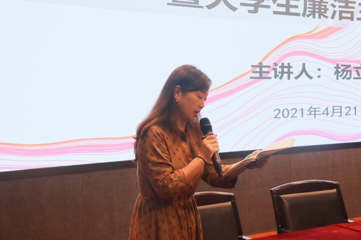 此次会议由kaiyun开云官方网站党委副书记杨丽君老师主持,杨丽君老师首先指出当代思想廉洁教育是我们大学生思想道德教育的重要内容,廉洁教育有助于培养学生正确的价值观和高尚的道德情操,促进社会及教育事业和谐健康发展。杨丽君老师还提到,现在互联网比较通达,网络是一把双刃剑,网络的发展虽有利于我们的生活,但同时也给诈骗分子制造了更多的骗人机会。对于这些骗局,我们应提高防范意识,学会自我保护,掌握一定的防诈骗技巧,共同营造出一个和谐美好的平安校园。