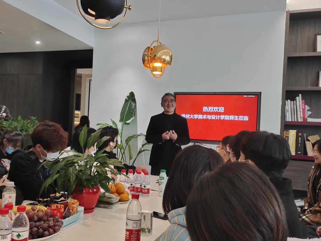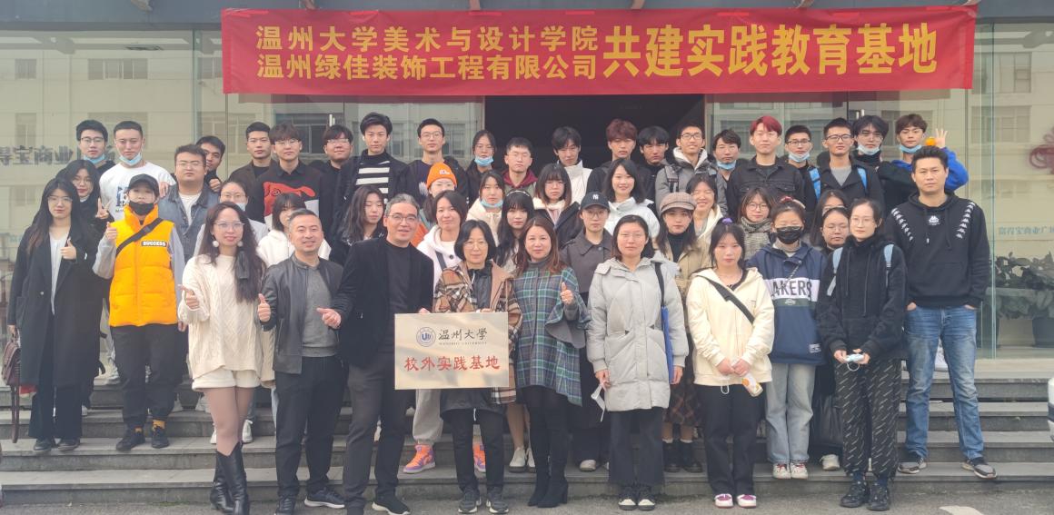 2021年11月25日kaiyun开云官方网站和温州绿佳装饰工程有限公司举行“校外实践基地”授牌仪式暨交流座谈会。kaiyun开云官方网站环境设计系主任黄玫玮老师、19级环境设计专业全体同学,温州绿佳装饰工程有限公司创始人朱书朋、章道锻先生及公司设计师团队共同参加,举行了校外实践基地的签约与授牌仪式。
