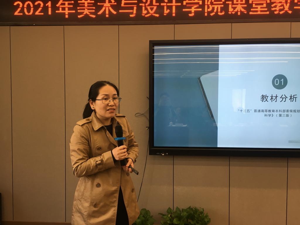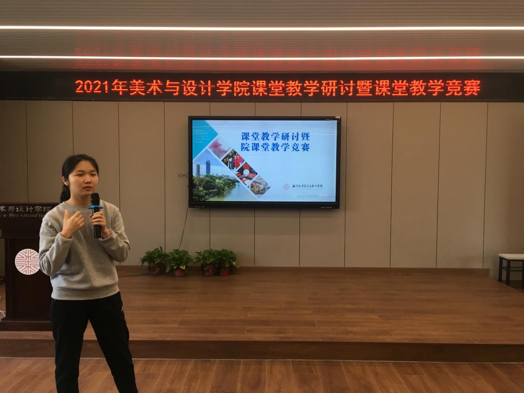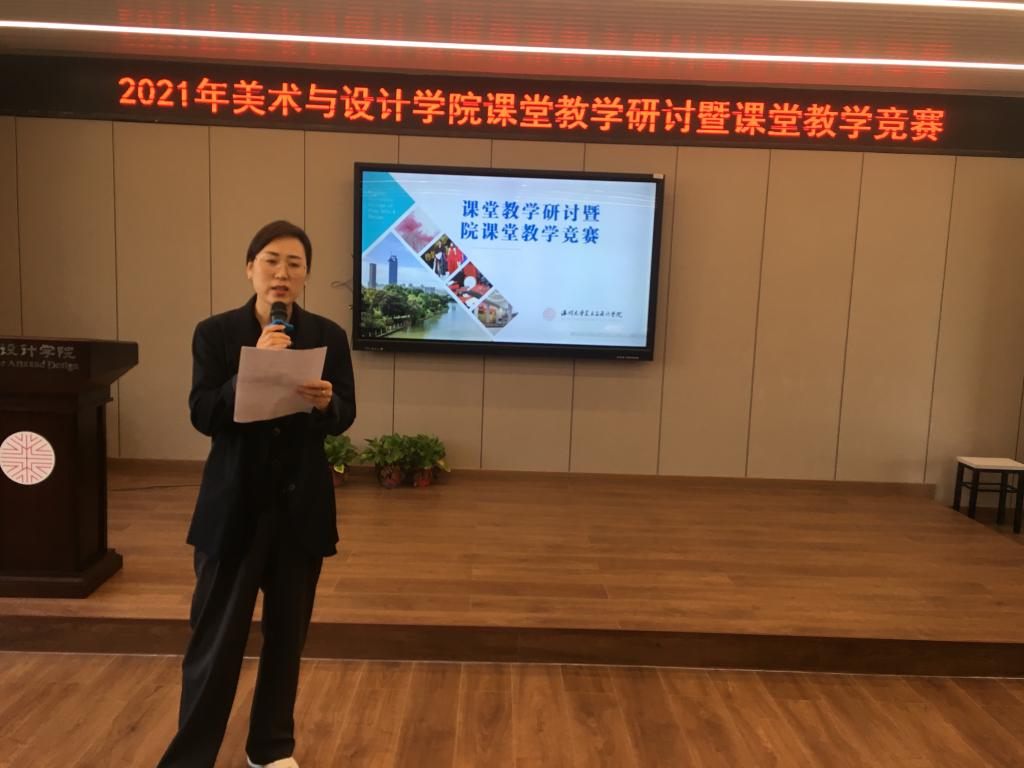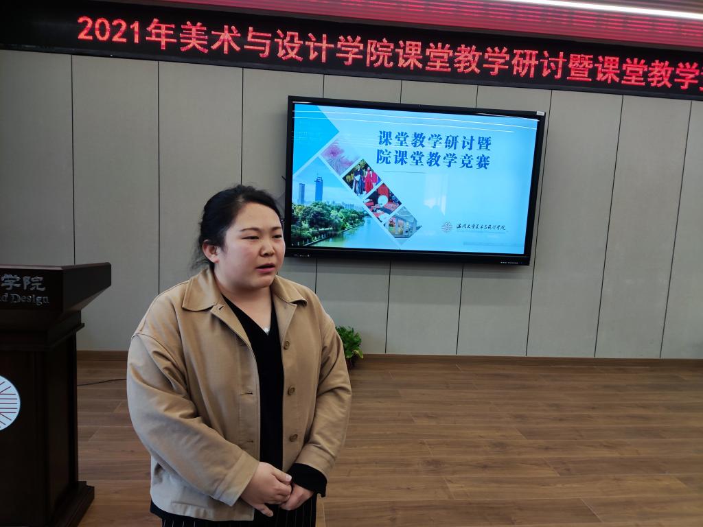 接着,来自美术系、环设系、服设系、服工系的参赛教师郑敬玉、尹乃军、王薇、潘赛瑶、赵丽艳、刘骎、黄高路、徐亮、程巍、胡毓娥分别以说课展示了各自课程的教学设计和思路。