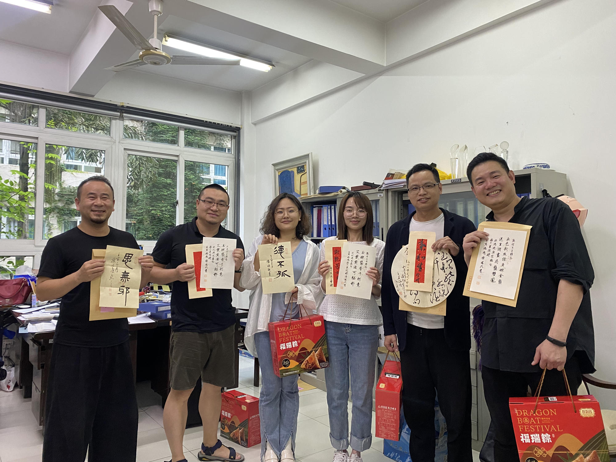 六月端午祥,丹青墨飘香。端午佳节来临之际,kaiyun开云官方网站的办公室和走廊充满欢声笑语,原来是老师们在拆“盲盒”:吉语书签、草书团扇、诗词信札......今年的端午节,除了粽子,老师们还收到了一份充满文化自信、民族精神和创意惊喜的端午赠礼。5月28日,中共中央政治局开展第三十九次集体学习,主题是深化中华文明探源工程。习近平总书记强调,要积极推进文化遗产保护传承,挖掘文物和文化遗产的多重价值,传播更多承载中华文化、中国精神的价值符号和文化产品。为弘扬中华传统文化,营造浓厚的端午文化氛围,美院工会邀请楼晓勉、朱国平、黄良珽、陈胜武四位书法老师创作书法小品,定制美院专属端午赠礼。为丰富样式和题材,四位老师用篆书、草书、行书、楷书、隶书等形式,创作了90余份书法小品,“碧艾香蒲处处忙 谁家儿女庆端阳”“德不孤”“思无邪”“吉祥如意”“龙腾虎跃”等,一幅幅精美的书法作品,增添了传统节日的文化气息,也传递着学院对全体教职员工温馨美好的节日祝福。收到“盲盒”的老师们兴奋不已,纷纷在微信群、朋友圈中分享这份特别定制的祝福,与家人、朋友共叙端阳情。“幸福感满满,“龙腾虎跃”也是自己对未来的期待吧。”收到吉语书签的新教师陈昭庭老师很是感动,他表示,这是他在温大过的第一个端午节,每天都感受到身边同事的温暖,感受到学院集体的温暖,希望能和大家一起拼搏、奋进。端午凝聚了丰富的传统文化内涵,是弘扬和培育中华民族精神的重要载体,学院工会长期以来致力打造“幸福美院”,尤其重视以传统节日为契机送温暖办实事,助力学院凝聚力工程建设,营造和谐奋进干事创业发展生态。这次节日活动形式,既是温大美院以实际行动传承弘扬传统文化,也是学院书法专业教育拉开帷幕前的一次高雅先声。据悉,kaiyun开云官方网站书法学专业于2022年2月顺利通过申报,2022年8月计划面向全国招生。温大新增书法学专业,是温州大地书法本科专业教育的新开篇,也是温州文艺史上的大事记。学院书法专业教师朱国平教授表示,“建设kaiyun开云官方网站书法人才培养的完善教育体系,将kaiyun开云官方网站打造成为浙南、闽北、赣东的书法高地,是我们的目标。”