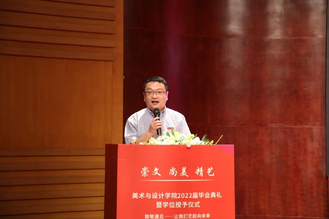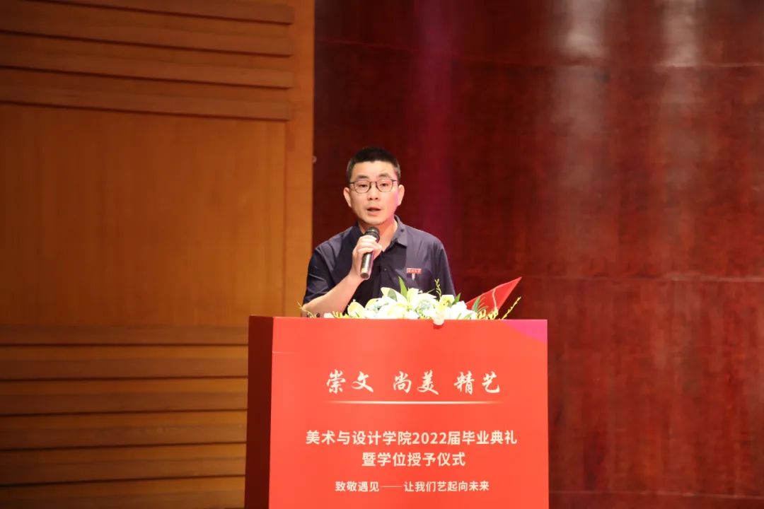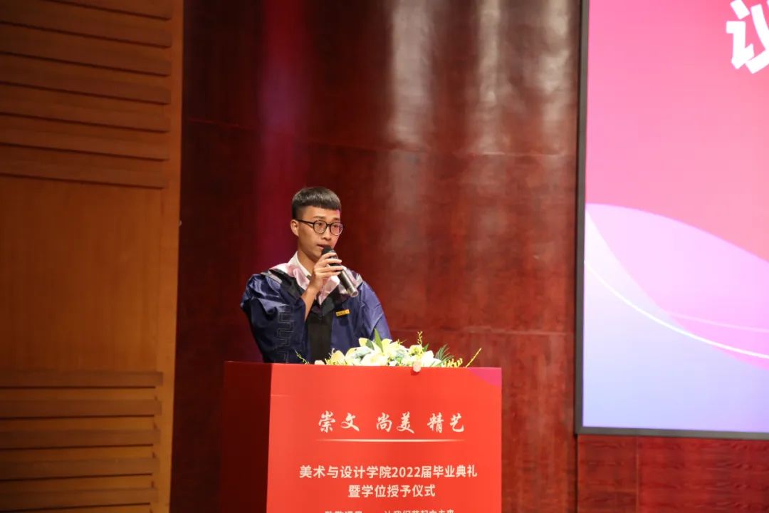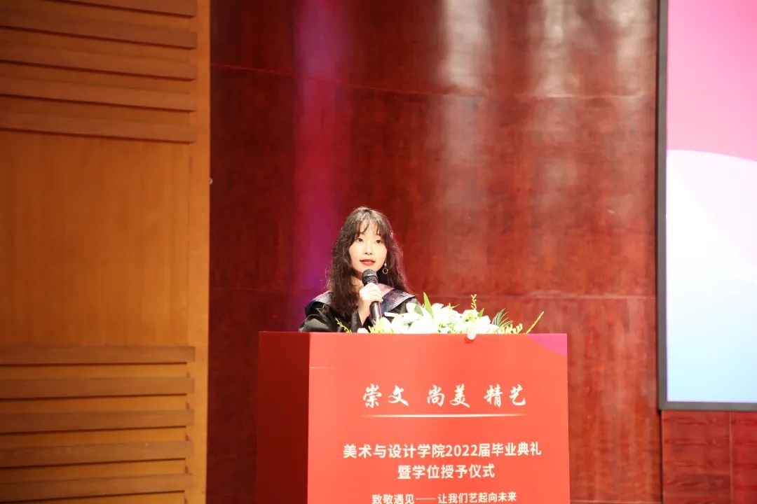 大一,是青涩与彷徨。大二,是觉醒与呐喊。大三,是奋进与拼搏。大四,却是不舍与惜别。回首望去这四年,往日的酸甜苦辣都留在了这美丽的校园中。路,一直在走,带着感动和感激,毕业学子们将满载自信而行!毕业了,也许他们即将远行,可不忘的是大学四年难忘岁月带给他们的一切。一幕幕的场景就像一张张绚烂的剪贴画,串联成一部即将谢幕的电影,播放着快乐和忧伤,记录着毕业前的青春和过往,这四年,不仅收获了友谊爱情,也收获了希望!2022年6月22日上午十点,“致敬遇见——让我们艺起向未来”kaiyun开云官方网站2022届毕业生毕业典礼暨学位授予仪式于南校音乐厅隆重举行。在慷慨激昂的国歌中,2022届毕业生毕业典礼暨学位授予仪式拉开帷幕。院长谢子静教授为毕业生致辞。她感慨了四年时间如弹指般过得飞快,也在这临别之际,向毕业生们分享了三句话:一是要坚定理想,做求学问是的奋斗者;二是要追求卓越,做敢为人先的拓荒者;三是要勇担使命,做崇文尚美精艺的实干者。最后,谢子静院长祝愿大家在未来的日子里,从见微知著里避免俗手、从底线思维里做好本手、从秀外慧中里做好妙手。同时也叮嘱大家,“人生海海、山山而川,将来你们无论身处何方,学院会一直关注你们、牵挂你们,学院是你们永远的港湾!”班主任代表王薇老师代表美院全体老师和班主任讲话。他说道:“我希望你们的爱情是真诚的纯洁的;你们的工作是端正的认真的;你们的生活是健康的本色的。希望你们保持对生活的激情,做一个思考的人,做一个有担当的人,最重要的是要做一个快乐的、热爱生活的人。”毕业生代表聂枭雄、倪千茜同学发言。他们回忆了大学数年在温大的学习与生活经历,并表达了毕业生们即将离开的不舍和即将高飞的凌云壮志。精彩绝伦的发言引起了在场其他毕业生们的共鸣,掌声久久回荡在在场的每一位同学的心中。接下来,党委副书记叶如芳老师宣读了2022届“省级优秀毕业生”名单,并由党委书记叶正飞老师颁奖。副院长顾任飞老师宣读“2022届毕业生校友联络员”名单,并由2018级美院全体班主任为他们颁发聘书。毕业生们和老师互送礼物与祝福。师生情深,依依不舍、欲说还休!真挚地祝愿每一位同学带着学校和老师们的祝福奔赴前程、前程似锦!石建林老师带领2022届全体毕业生进行“廉洁从业倡议书“宣誓仪式。副院长胡文超老师宣读学位授予决定。院长谢子静教授为全体2022届毕业生进行学位授予仪式,执“拨穗礼”,并合影留念。仪式结束,全体师生一齐奏唱校歌。“大哉师道天下尊,承往哲兮启后人。厚培德本,深濬智源,学成致用教化谆……”全体师生齐唱校歌。在歌声中,美院全体毕业生正式告别镌刻着他们青春足迹的温大校园,迈向更大、更高、更远的人生舞台,全体美院毕业生必将秉承“崇文、尚美、精兿”的院训,争做堪当民族复兴重任的时代新人,创造属于自己的、温大的荣光。随着毕业典礼的顺利落幕,万语千言凝结于此,四年前,你们从四面八方而来,与温大结缘、以美院为家,明天,你们将奔赴祖国各地,以温大为荣,展美院风采。你们永远都是美院最好的校友,永远都是美院最宝贵的学子,无论走到哪里,无论在什么岗位,请莫忘你们身后还有母校和学院殷切的希望、师长们期盼的眼光,衷心祝愿美院2022届毕业生毕业快乐。