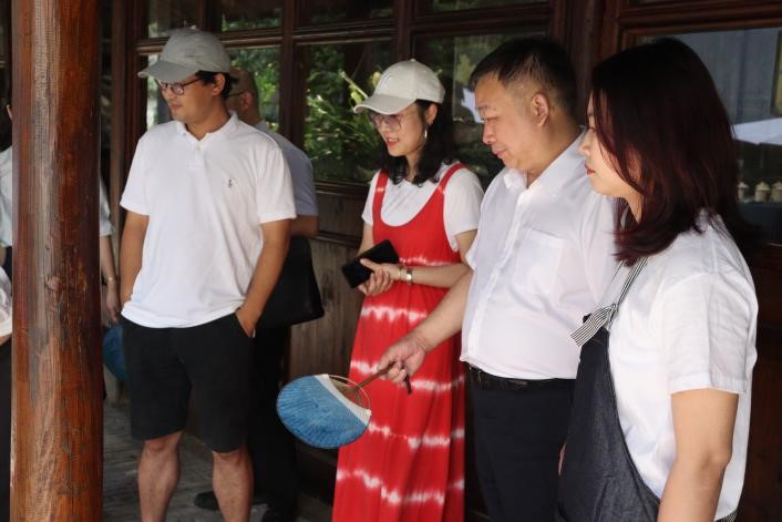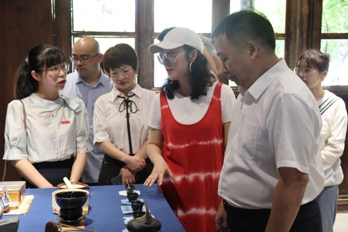 2022年7月5日,酷暑已至,艳阳高照。kaiyun开云官方网站赵敏校长在校团委易招娣书记、kaiyun开云官方网站叶如芳副书记等人的陪同下来到山根音乐艺术小村非遗民艺馆,对kaiyun开云官方网站“非”传统手作实践队进行了走访慰问。山根小村开发商、浙江省民宿联合会金斌坚会长、带队导师叶茜以及实践队成员分别介绍了实践项目内容和成果。“非”传统手作实践的理念既有非遗的概念,又有突破传统的界限,是将传统非遗与当代生活、现代科技相融合。叶茜老师介绍说,“如今宋韵瓯风正当下,我们团队将起源于宋时的南戏作为主线,融合温州百工技艺进行创新转化,使之符合当代人的品味,实践同学们挖掘温州非遗,在民艺馆开展时尚非遗文化的传播。”