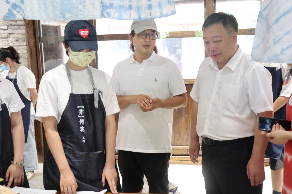 2022年7月5日,酷暑已至,艳阳高照。kaiyun开云官方网站赵敏校长在校团委易招娣书记、kaiyun开云官方网站叶如芳副书记等人的陪同下来到山根音乐艺术小村非遗民艺馆,对kaiyun开云官方网站“非”传统手作实践队进行了走访慰问。山根小村开发商、浙江省民宿联合会金斌坚会长、带队导师叶茜以及实践队成员分别介绍了实践项目内容和成果。“非”传统手作实践的理念既有非遗的概念,又有突破传统的界限,是将传统非遗与当代生活、现代科技相融合。叶茜老师介绍说,“如今宋韵瓯风正当下,我们团队将起源于宋时的南戏作为主线,融合温州百工技艺进行创新转化,使之符合当代人的品味,实践同学们挖掘温州非遗,在民艺馆开展时尚非遗文化的传播。” 赵敏校长先后参观了几个体验区域并仔细聆听了学生的介绍与实践心得。期间,学生展示了南戏研学项目、戏曲IP热转印和蓝染产品与宋式点茶的结合形式以及相关文创产品。赵敏校长对于南戏与蓝夹缬同现代生活用品结合、蓝夹缬的再应用与灰染的结合、纯天然无污染的传统染色技艺表示了肯定,还亲自上手体验了一把蓝染的乐趣。 山根音乐艺术小村已和温大建立双创基地,自去年“非”传统工坊空降以来,激活了整个非遗民艺馆。每次活动开展得如火如荼,深受喜爱,游客及体验者纷纷慕名而来,也有效地带动了山根音乐艺术小村的人流量,助力了乡村文化的发展。 此次慰问,赵敏校长充分了解“非”传统手作实践队在山根开展的实践内容,认真听取了实践同学的情况汇报,对实践队的开展给予细心的指导,赵敏校长也希望同学们,在安全的前提下,多思考多践行,更多地将自己课堂上所学的专业知识转化为服务社会的力量,不断在实践中受教育,长才干,做贡献。
