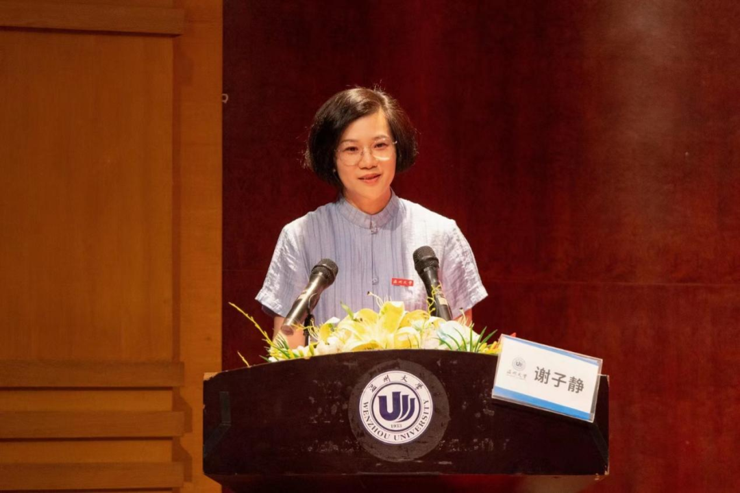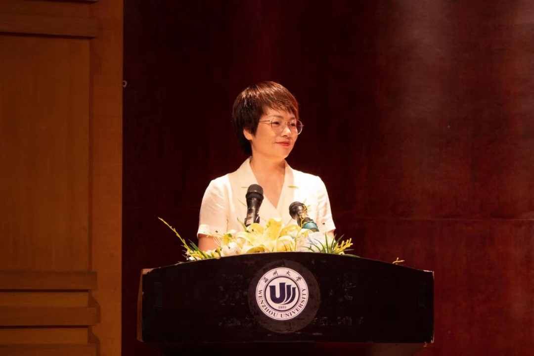 学院院长谢子静教授致辞,谢院长首先热烈祝贺和欢迎新同学们加入温大美院大家庭,并且向大家介绍了学院的发展现状和近年来的办学成果。风劲好扬帆,奋斗正当时,院长殷切的希望同学们可以坚定理想、持之以恒;希望同学们能够独立生活、独立思考、成就独立的个性,成为独一无二的自己,担起对自己、对家庭、对社会的责任;希望同学们能够“崇文”、“尚美”、“精艺”,无所畏惧地成就更美好的自我、书写更璀璨的人生!