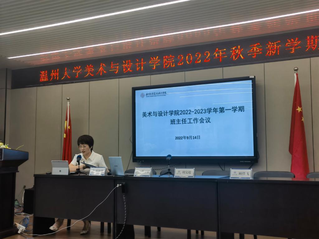 2022年9月14下午13:30分,学院召开2022-2023学年第一学期班主任工作会议,出席本次会议的有学院党委副书记叶如芳、学工办主任杨鹏、以及全体本研班主任。 会上,叶如芳副书记,首先向全体班主任致以三个感谢,感谢所有班主任在上一学年度的辛苦付出,以及在暑假就业、社会实践等方面对学生的帮扶和指导。随后,叶书记向全体班主任传达了2022年思政研讨会会议的精神,强调新学年全校学生思政工作要在加强校园安全稳定上下实功夫,在提高思政工作水平上下苦功夫,在提升工作效能上下硬功夫,在促进高质量就业上下狠功夫。 接下来,叶如芳副书记,围绕学生工作中典型的一些工作案例,进行了分享,分别是违反疫情防控、违反学风考勤以及学生心理健康三个方面的典型案例进行了剖析,以此强化班主任在遇到相关学生事件时的思考和处理办法,也进一步加强班主任队伍对学生关心关爱的引导。 最后,叶如芳副书记交流了班级管理工作的一些要点,四项十二点,分别围绕强化思想引领,构建铸魂育人矩阵、完善管理服务,保障学生健康成长、搭建成长平台,促进学生全面发展、实施精准帮助,提高育人实效四个项工作要点,针对学期初教育、网络育人、学风建设、学科竞赛、关心关爱等十二个点提出了本学年的学生工作具体要求,希望美院全体班主任紧紧围绕学校的学生工作重点,夯实日常学生管理,进一步关心关爱学生的行长成才。 会上,学工为全体班主任准备了2022-2023学年学生工作手册,涵盖学生相关工作管理联系方式、以及学生各项数据,还为老师们精心准备了非传统工坊的扎染纸伞。