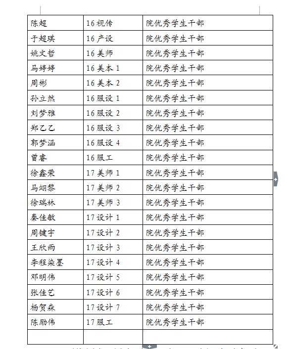 现将2017-2018学年第一学期kaiyun开云官方网站“优秀学生干部”“工作积极分子”名单公示如下,如对评选结果有异议,请于3月7日17:00前及时联系美术学院学生科。