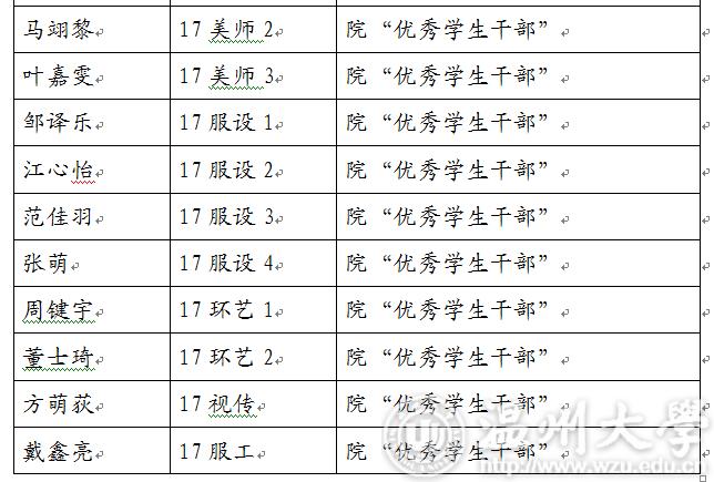 2017-2018学年第二学期kaiyun开云官方网站“优秀学生干部”“工作及积极分子”名单