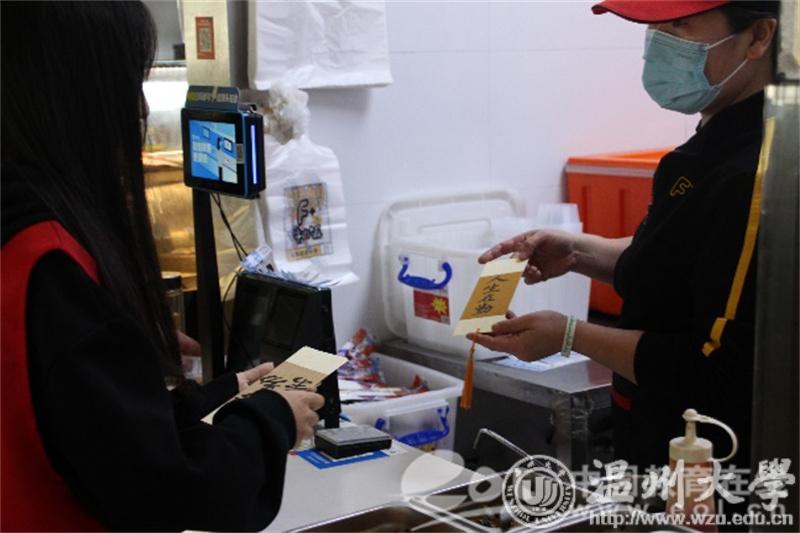 活动中,同学们个个怀着满腔热忱,拿着自己亲手完成的礼物,去宿舍送给和蔼可亲的宿管阿姨,去快递站送给忙忙碌碌的快递小哥、去食堂送给勤勤恳恳的打饭阿姨、去门岗送给兢兢业业的保安叔叔……