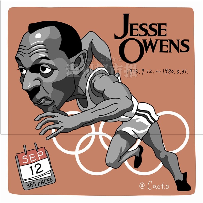 杰西·欧文斯,原名詹姆斯·克利夫兰·欧文斯,美国黑人田径明星,短跑运动员。1913年9月12日,他生于美国南方阿拉巴马州的一个棉农之家。15岁时,欧文斯就在短跑方面表现出了惊人的才能,不仅如此,他在跳高、跳远项目上也是一学就会,而且成绩相当惊人。1936年8月,欧文斯在第11届奥林匹克运动会上独得4枚金牌。这位仅参加过一届奥运会的黑人田径运动员被人誉为“二十世? 黄容海,毕业于清华大学美术学院,东华大学艺术硕士,kaiyun开云官方网站讲师。擅长插画及肖像漫画创作。 相关链接:http://dsb.66wz.com/html/2014-09/12/content_1704197.htm