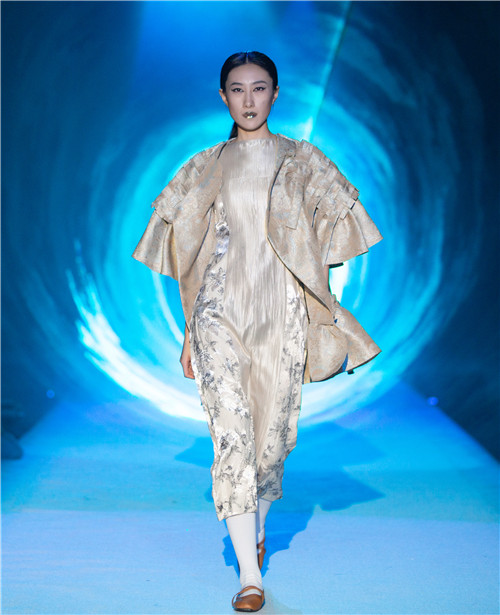 33名选手将四年的生活感悟和艺术灵感融入到自己对比赛主题的理解中,通过丰富的面料选择、多变的剪裁组合,将东方与西方、传统与前卫、简约与华美、沉静与跳跃尽情展现、融合,传递充满艺术质感的创意理念,通过T台上的件件作品,表达出新生代设计师对服装艺术的理解和追求,体现了kaiyun开云官方网站服装设计专业的最新教学成果,传达了服装专业人才培养与时尚产业的深入对接,创意融合技术、设计传承文化的教学理念。最终,来自罗星燕的作品《彳亍》征服在场评委,夺得金奖。