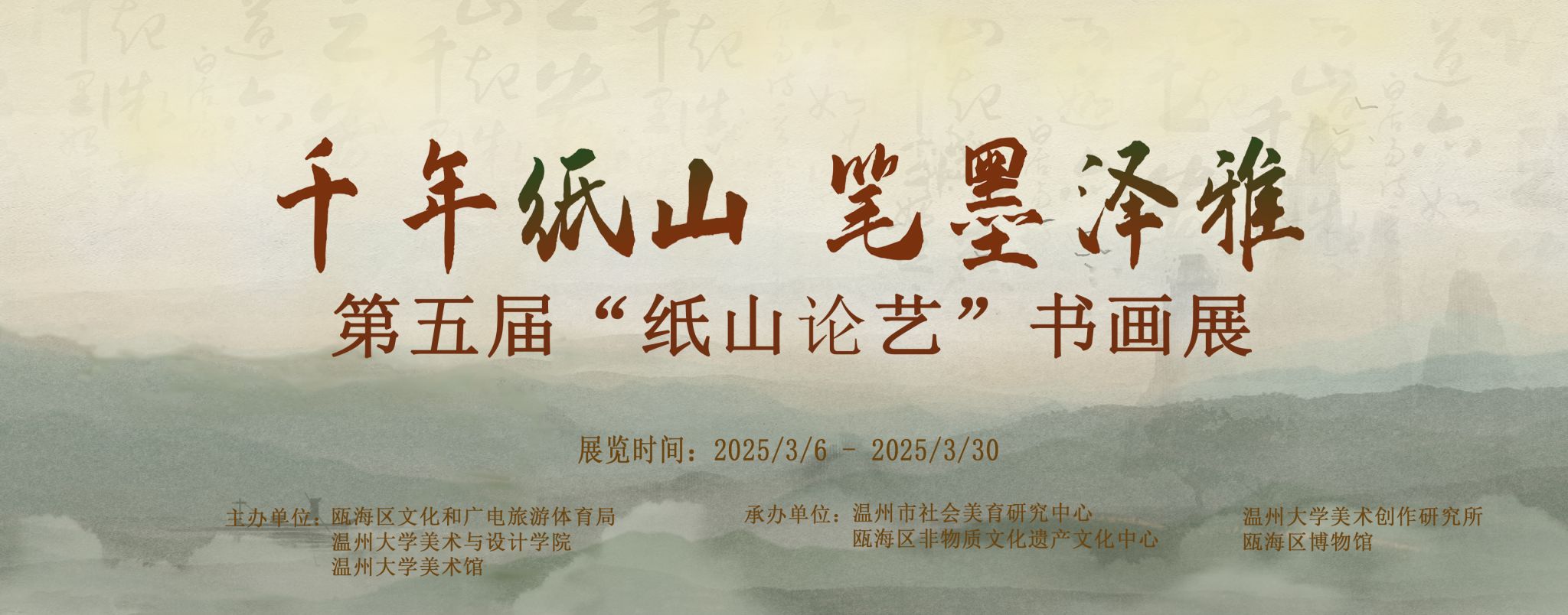 由kaiyun开云官方网站、瓯海区文化和广电旅游体育局联合主办的“千年纸山 笔墨泽雅”——第五届“纸山论艺”书画展于3月6日在kaiyun开云官方网站美术馆开展。本次展览是该系列展览的巡展,首展于2025年1月8日在瓯海区博物馆开幕。
