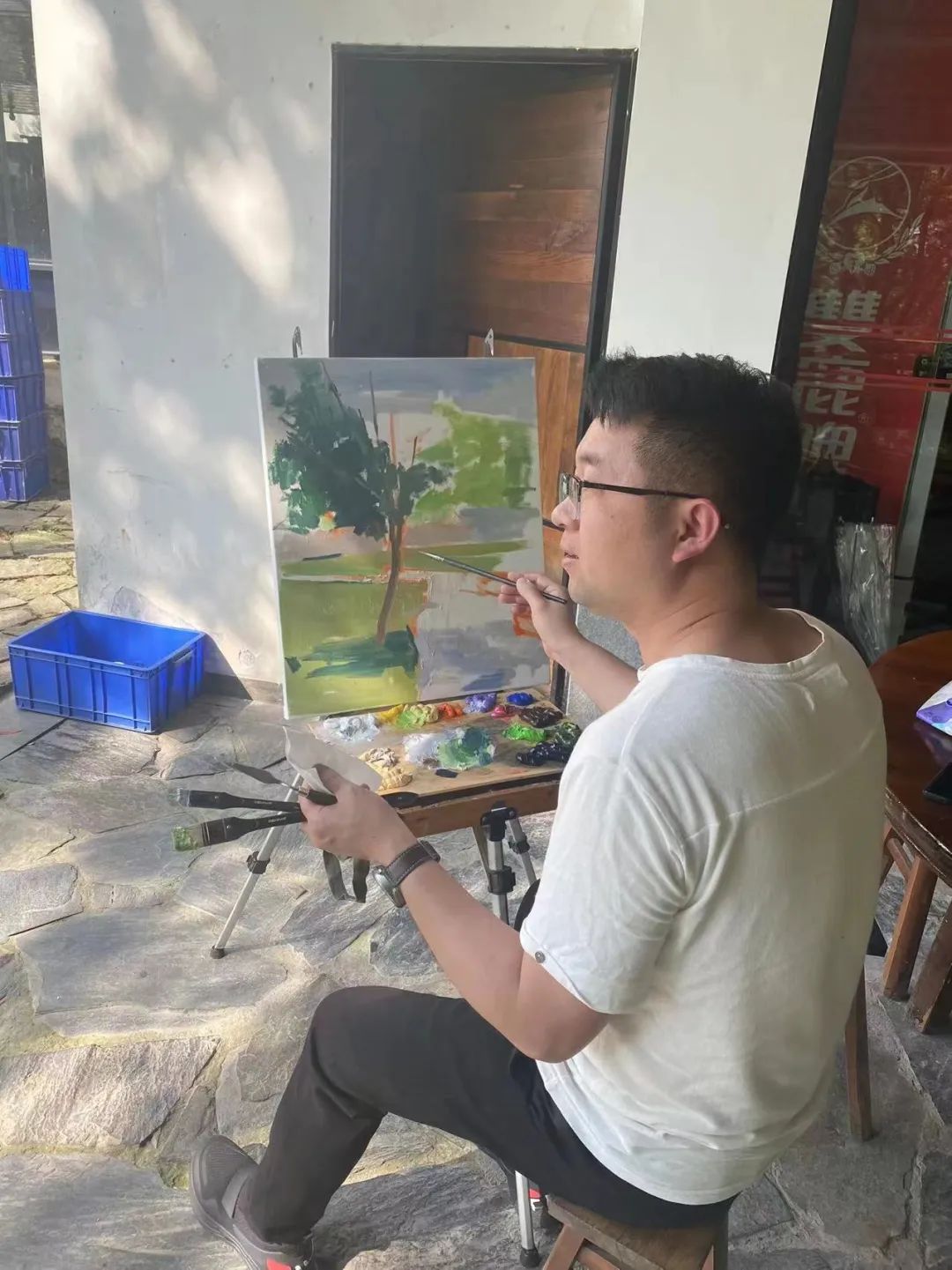 2022年4月11日-4月15日,为期5天的温州市中小学教师继续教育《油画风景写生技法研究与教学》在永嘉书院开课。课程培训由蔡可群老师、黄良珽老师执教。首先通过专题讲座的形式进行理论引领,然后导师示范讲解了解绘画语言与创作思路的重要性,让到室外写生练习,并进行创作,并通过作品讲评与交流感悟中国油画及油画课程实施的意义与价值,以及对课程的回顾和反思;最后在此基础上进行自身的艺术研究与美术教学的设计。