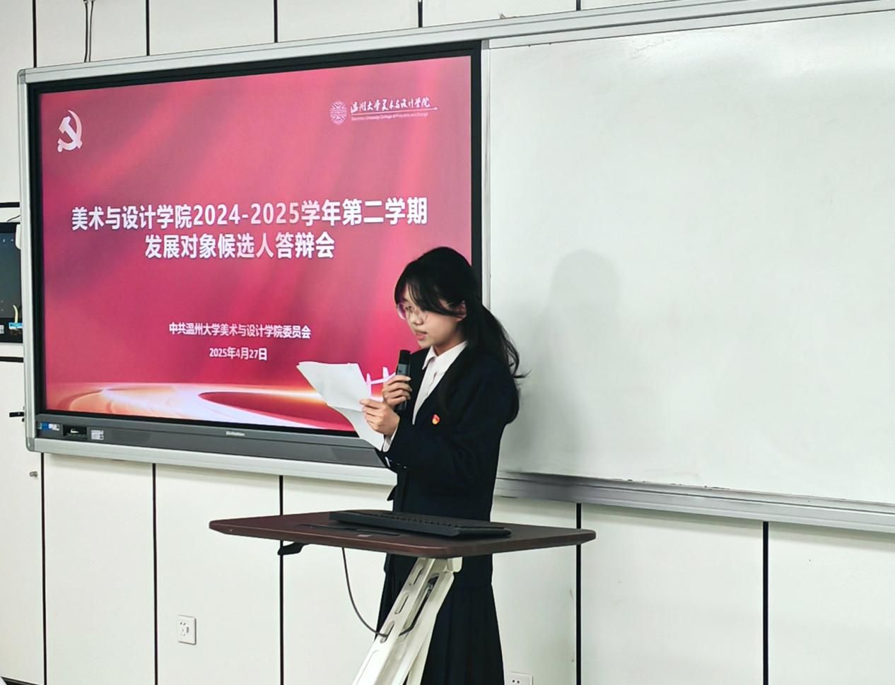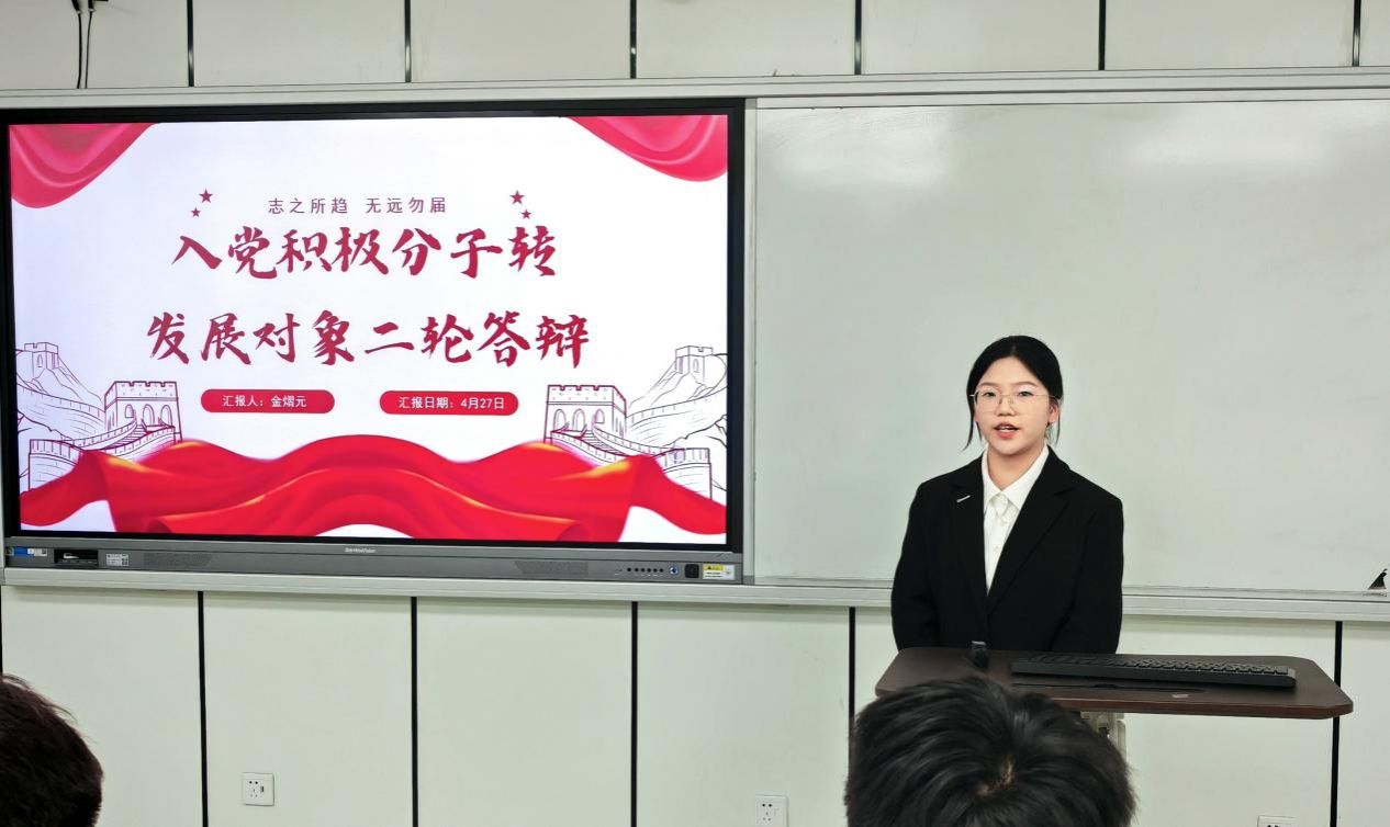 为扎实推进学生党支部建设,提高学生党员素质和服务意识,严格把控党员发展关口,吸纳理论知识储备丰富、党性修养良好的同学向党组织靠拢。2025年4月27日下午,kaiyun开云官方网站“学生党支部发展对象候选人答辩会”于美术楼2B3001教室顺利举行。出席此次答辩会的有学院学工办科长杨永利老师、党建指导老师陈嘉怡老师、辅导员石建林老师、刘伟金老师以及全体学生党员。